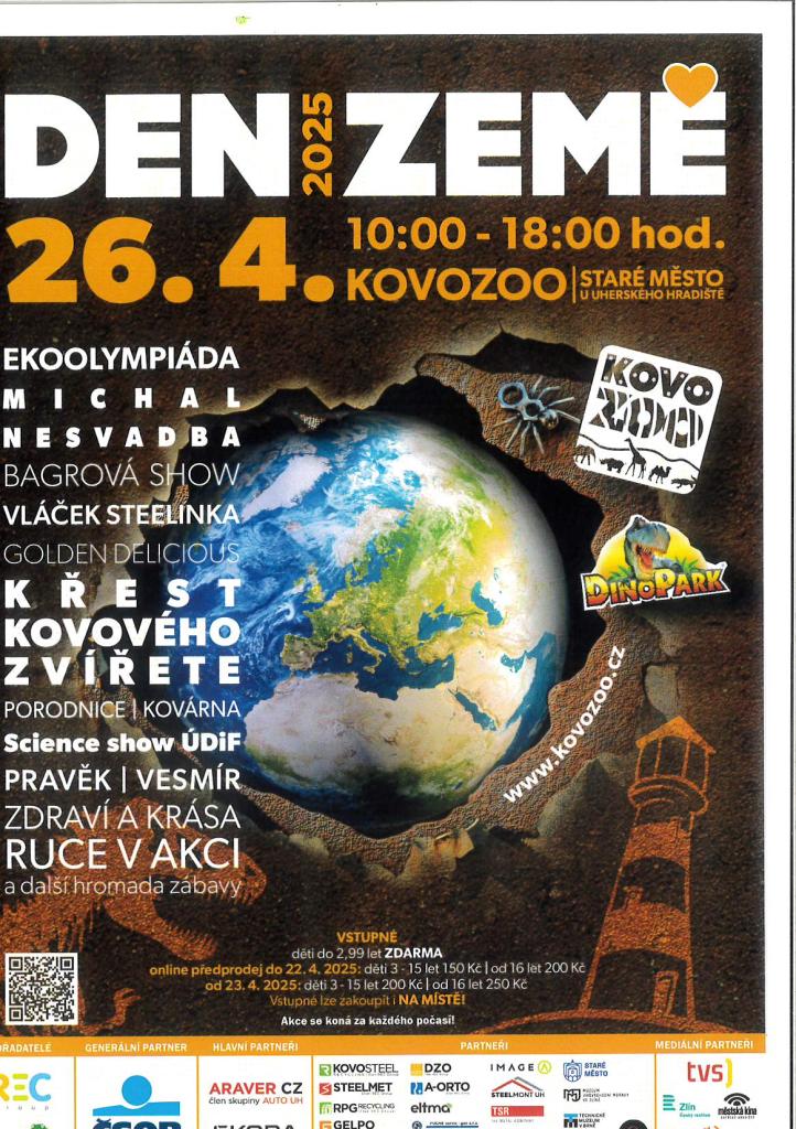 Přijďte oslavit Den Země 26. dubna od 10:00 do 18:00 hodin do KOVOZOO ve Starém Městě. Těšit se můžete na ekolympiádu, bagrovou show, vláček Stelinku, křest kovového zvířete a hromadu další zábavy. Akce se koná za každého počasí!