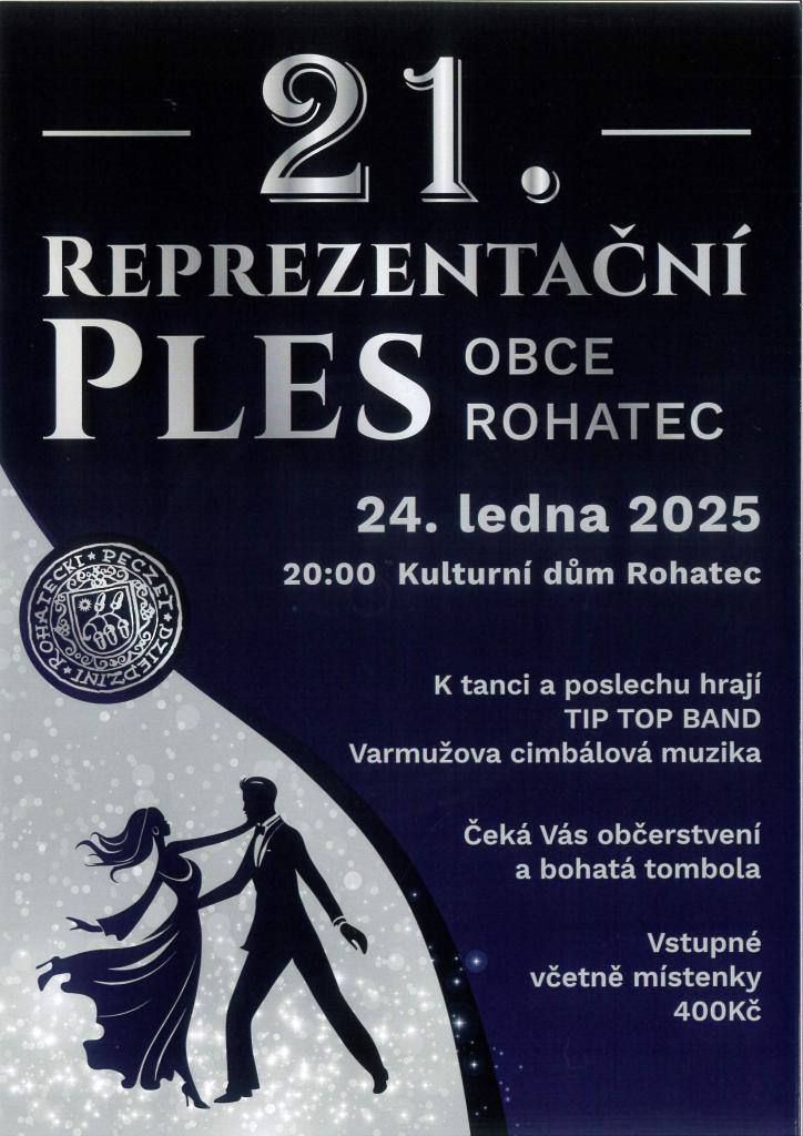 Přijďte se pobavit na Reprezentační ples obce Rohatec v kulturním domě v pátek 24. ledna 2025 od 20:00. K tanci a poslechu zahrají TIP TOP BAND a Varmužova cimbálová muzika. Těšit se můžete na občerstvení a bohatou tombolu.