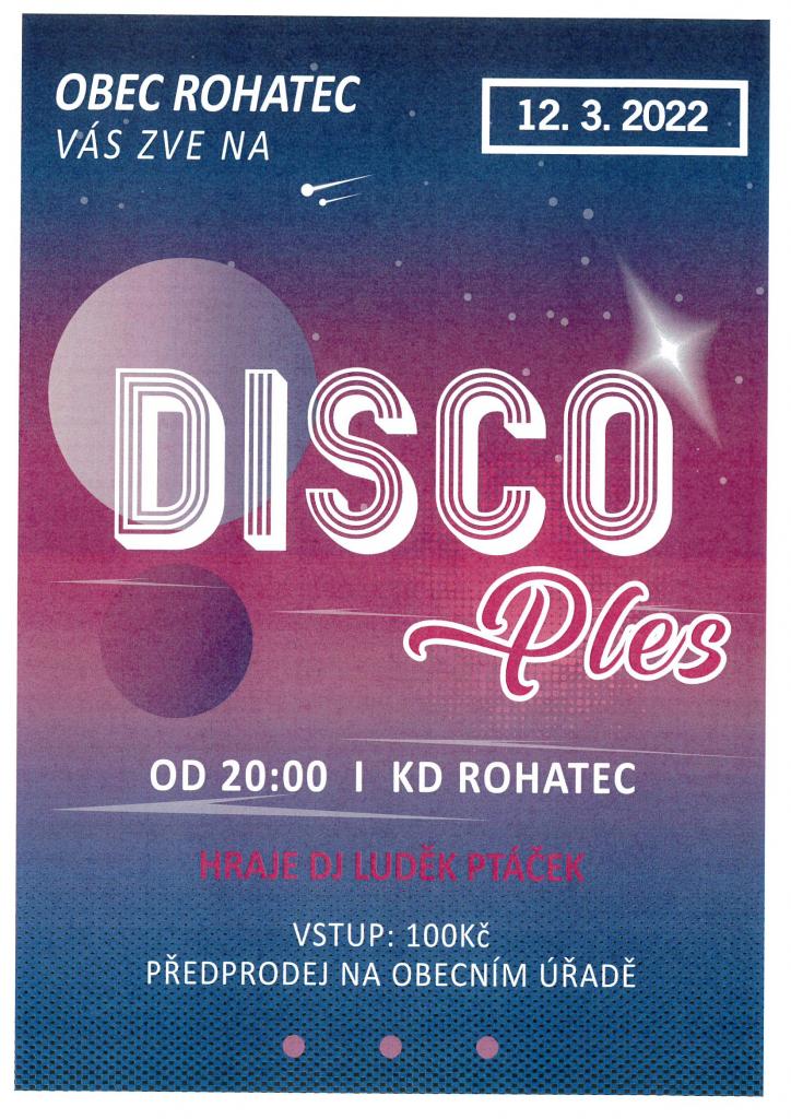 vstupenka je PLATNÁ na DISCOPLES 2022, který proběhne v sobotu 12.března 2022 v KD Rohatec