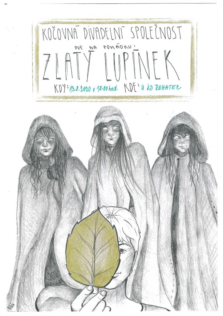 Kočovná divadelní společnost srdečně zve dne 13. 8. 2020 v 18:00 hod. "Pod zelené" ( u Kulturního domu v Rohatci ) na pohádku "Zlatý lupínek".